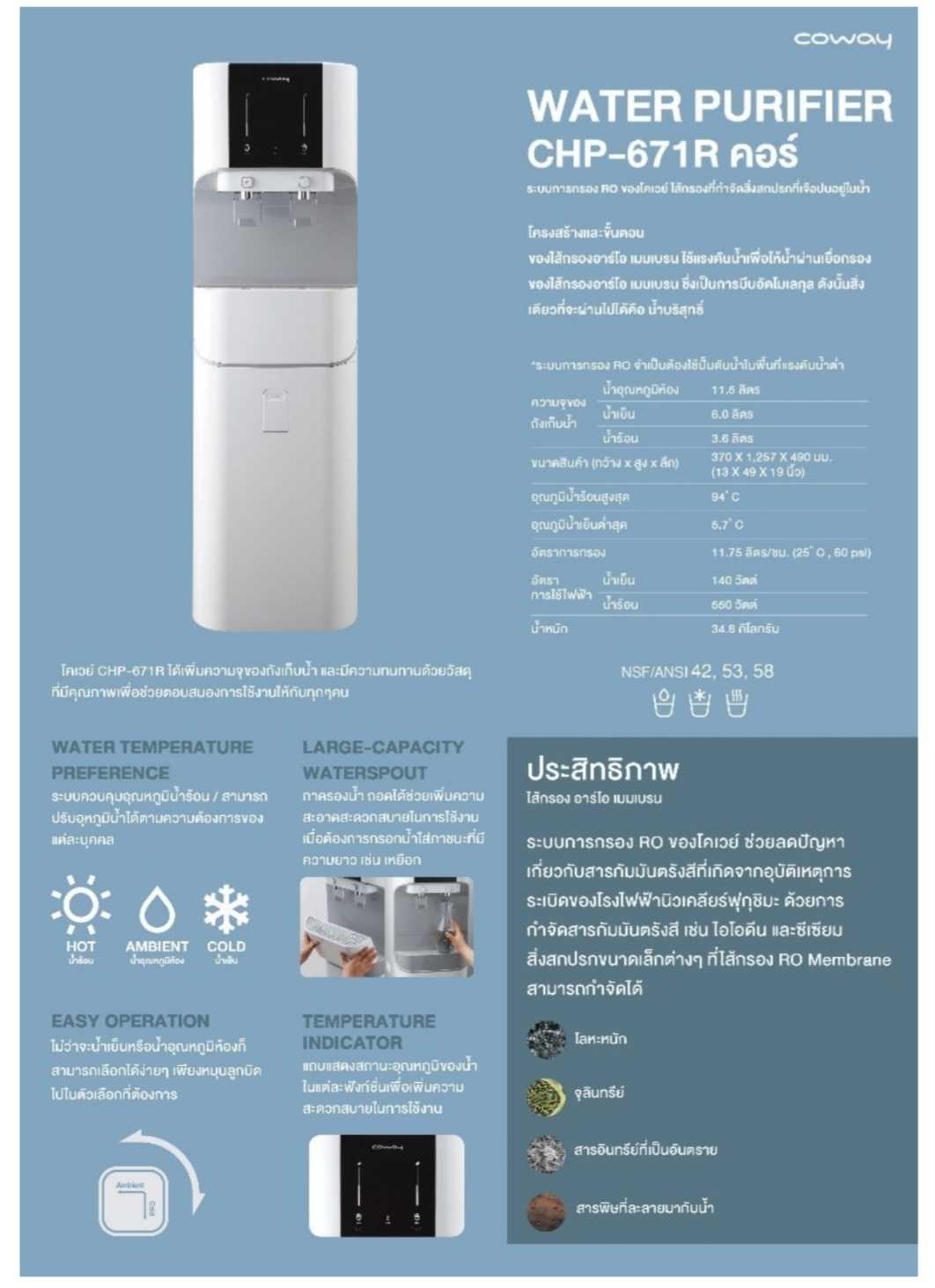 เครื่องกรองน้ำCoway รุ่น CHP-671R 4 อุณภูมิ (น้ำร้อน น้ำเย็น และน้ำธรรมดา )