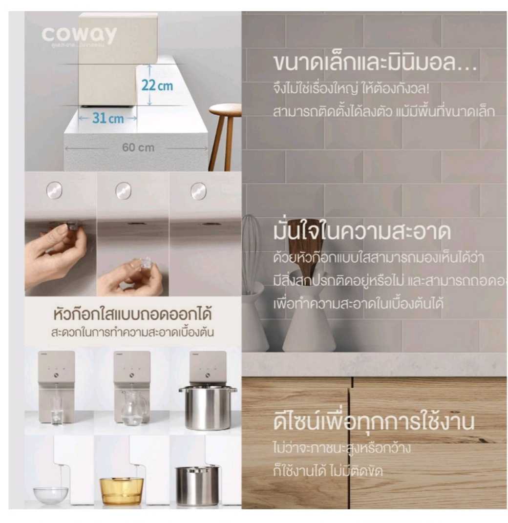 เครื่องกรองน้ำดีไซน์สวยจาก coway แม้จะมีขนาดที่เล็กกะทัดรัด แต่ก็ยังคงคุณภาพและประสิทธิภาพในเรื่องของความสะอาด ด้วยมาตรฐานแบรนด์อันดับหนึ่งจาก "เกาหลี"